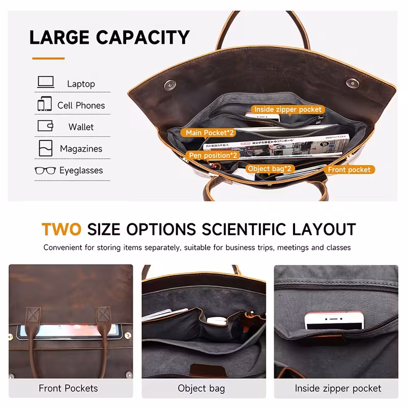 Durable and Long-Lasting: The top-grain cowhide leather ensures that this bag is built to withstand everyday use and