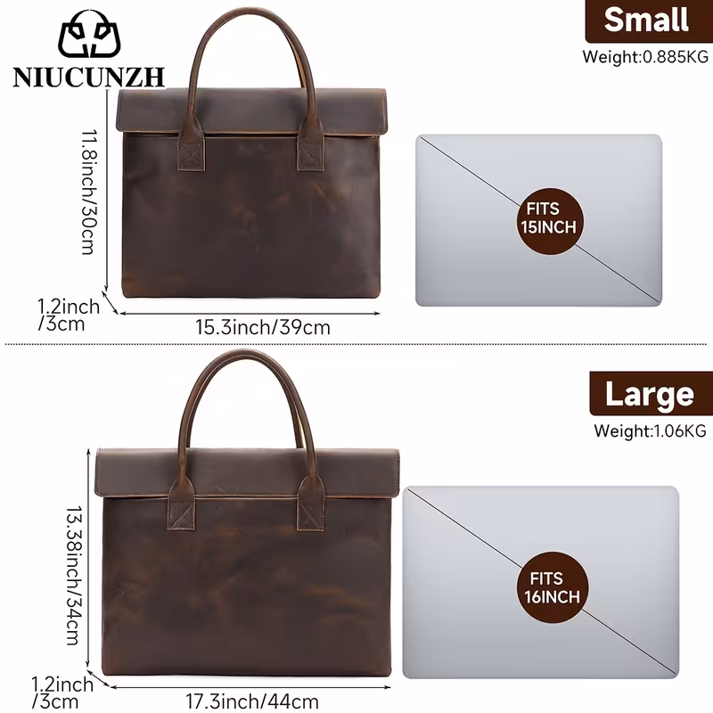 The NIUCUNZH Men’s Casual Top-Grain Leather Shoulder Bag stands out for its premium leather construction, ample storage, and versatile design. Unlike many traditional briefcases, this shoulder bag offers both professional style and casual comfort, making it perfect for daily commutes, business trips, or travel. Its adjustable strap and multiple compartments make it practical and comfortable, while the high-quality leather ensures it will last for years.