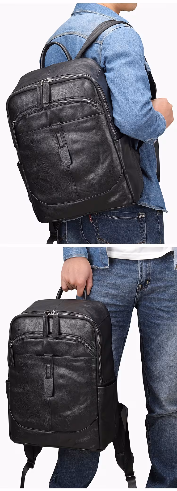 With a padded laptop compartment, this bag ensures your device stays secure and protected from bumps or scratches. The spacious interior provides room for books, documents, gadgets, and personal items, while the exterior boasts a sleek, minimalist design that can be paired with both casual and business attire. The adjustable straps offer comfort for all-day carrying, and the high-quality leather construction ensures that this bag will develop a beautiful patina over time, adding character with each use.