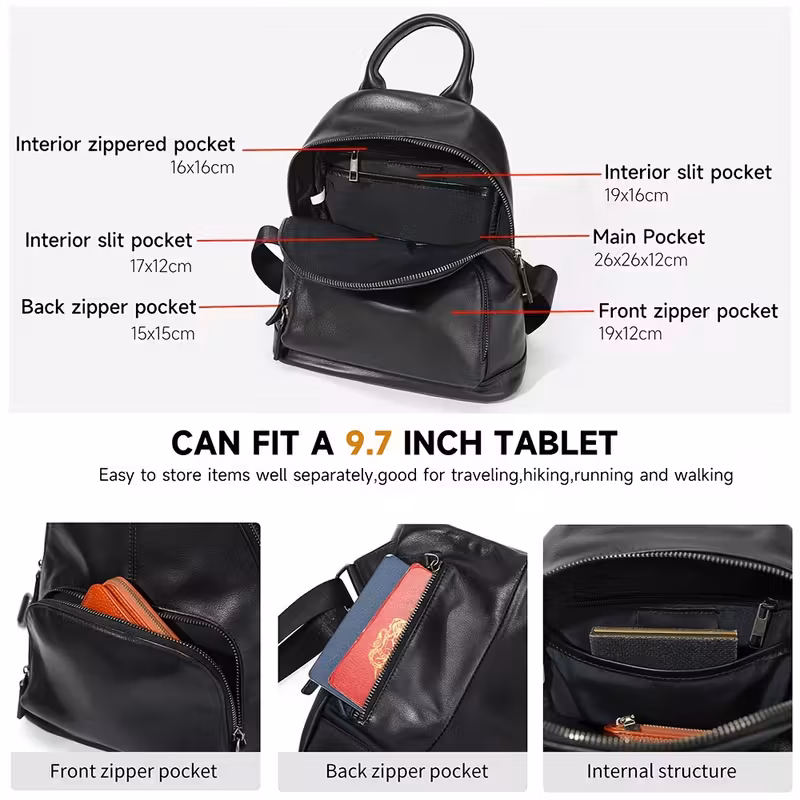 Description – NIUCUNZH Women’s Top-Grain Leather Backpack