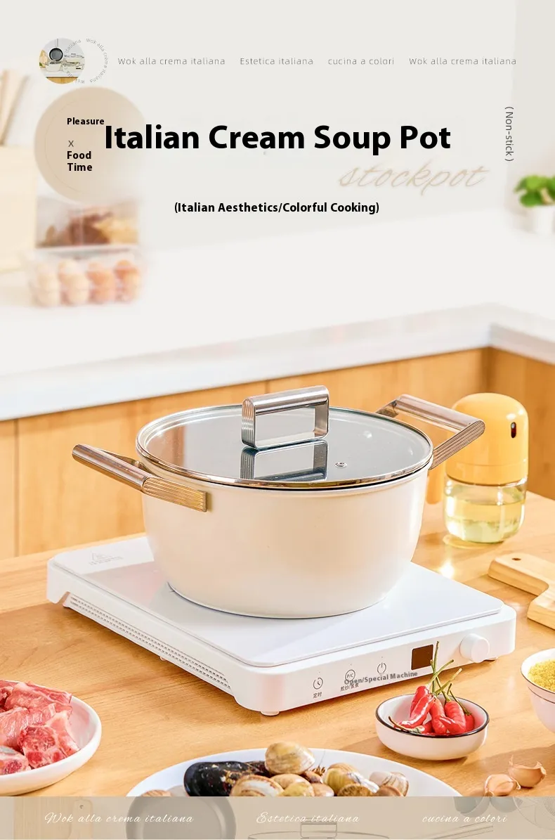 Color: cream white squeeze 24cm soup pot (extra thick)