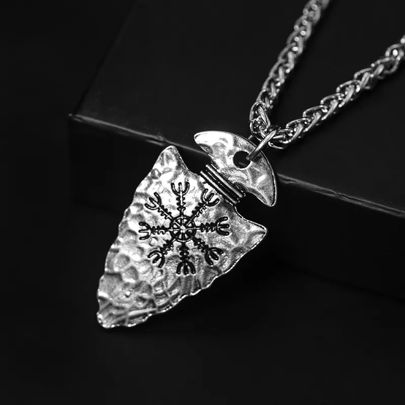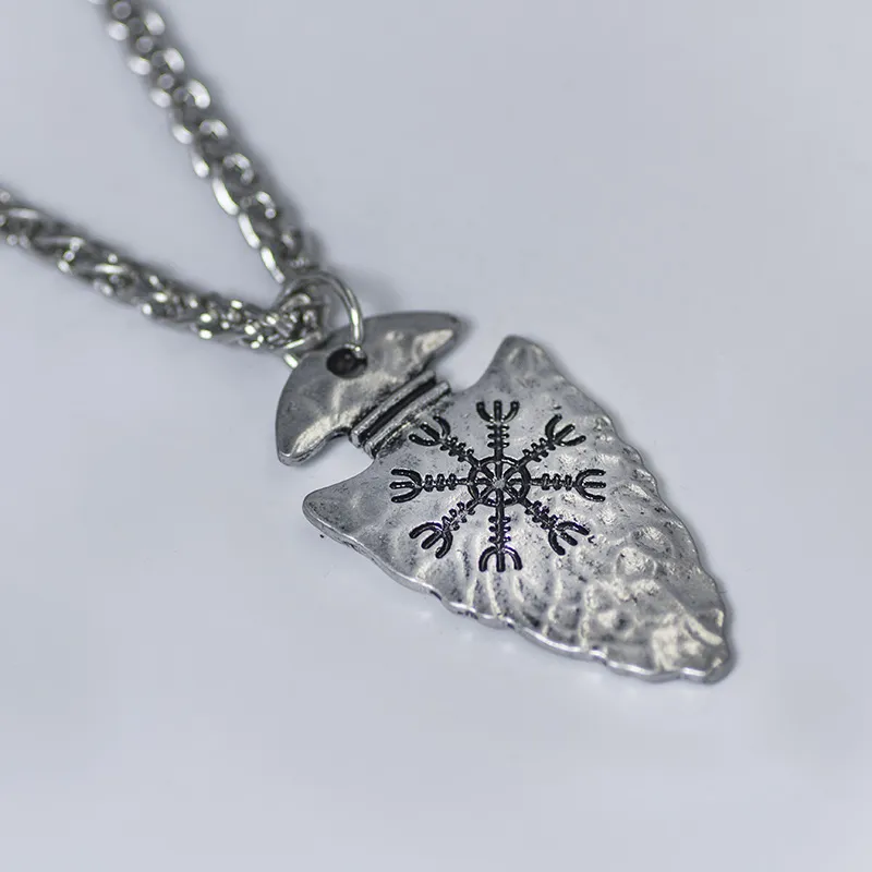 Nordic Viking Vegvisir Rune Arrow Pendant Necklace