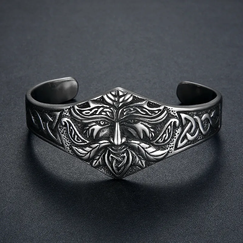 Nordic Vintage Viking Warrior Head Stainless Steel Bracelet