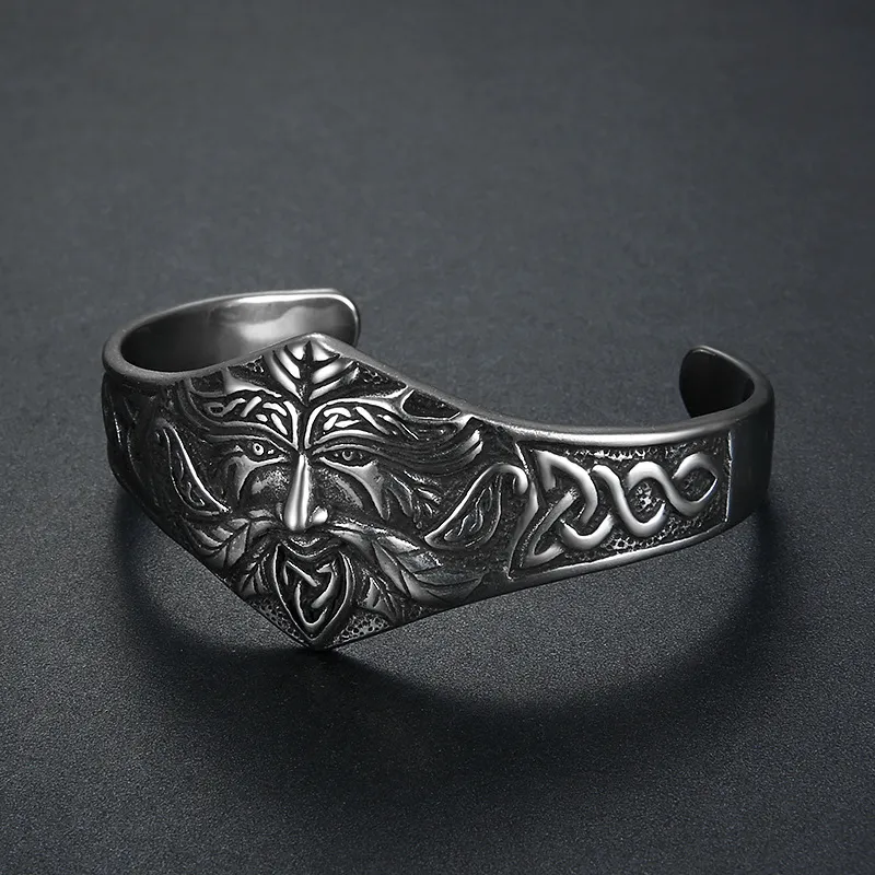 Nordic Vintage Viking Warrior Head Stainless Steel Bracelet