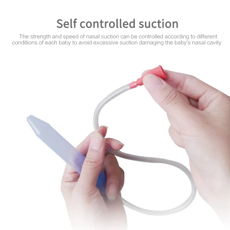 The device consists of a soft, flexible tube placed at the baby’s nostril and a mouthpiece the parent gently sucks on to create suction. It’s simple, effective, and non-invasive.