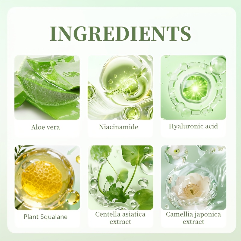 The combination of aloe vera and hyaluronic acid provides deep hydration, keeping your skin moisturized and plump throughout the day.