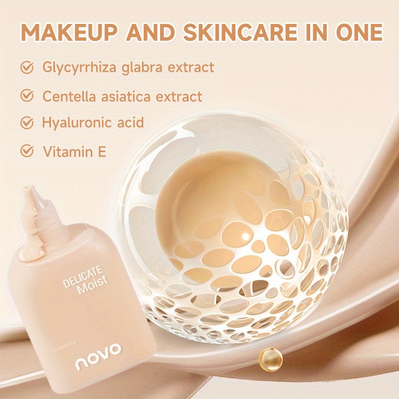 The Novo Long-Lasting Waterproof & Sweatproof Matte BB Cream combines the benefits of a BB cream and foundation in one product. It provides full coverage, effectively hiding imperfections such as blemishes, dark circles, and redness, while controlling oil and providing hydration for a smooth, even complexion. Enriched with hyaluronic acid and vitamin E, it moisturizes the skin while maintaining a matte finish, making it ideal for those with oily or combination skin.