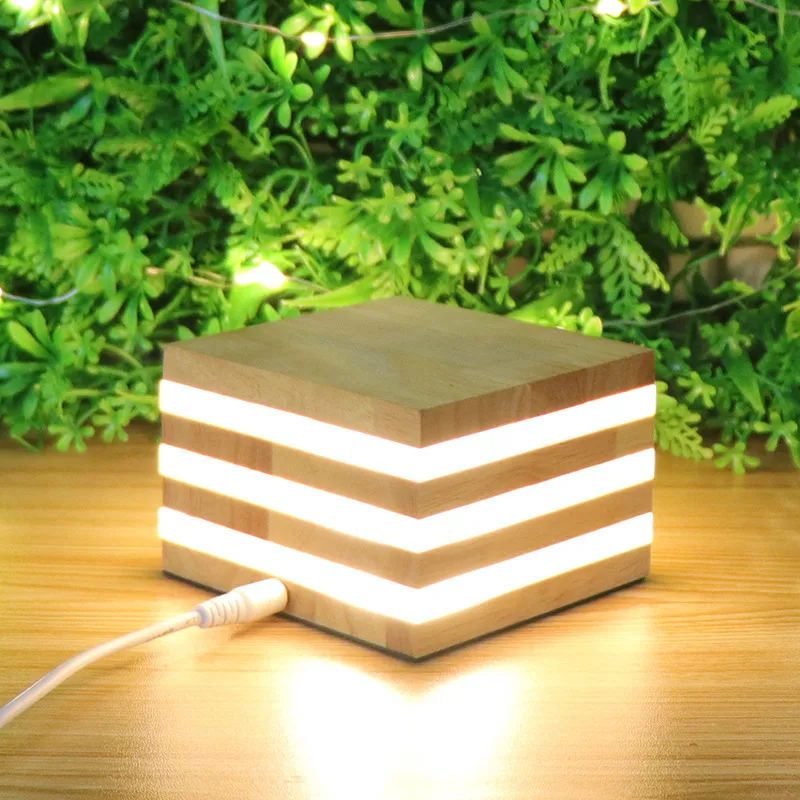 Nueva luz de noche creativa de madera maciza LED luz de noche nueva lámpara de mesa de madera extraña lámpara de noche cuadrada para dormitorio