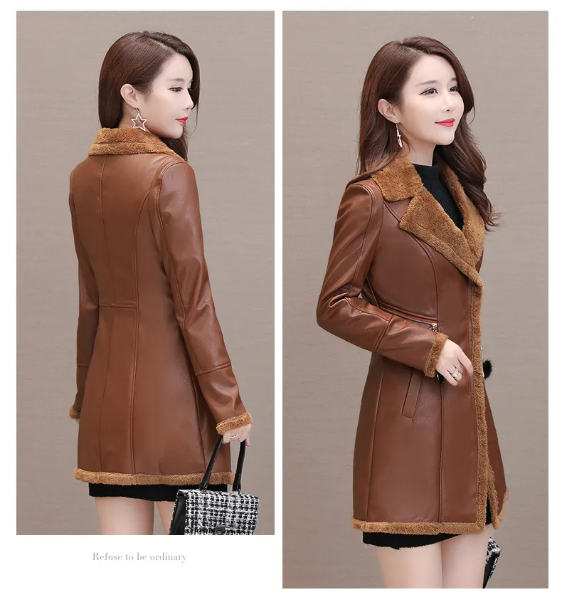 Nuevo abrigo informal de lana de cordero entallado de PU