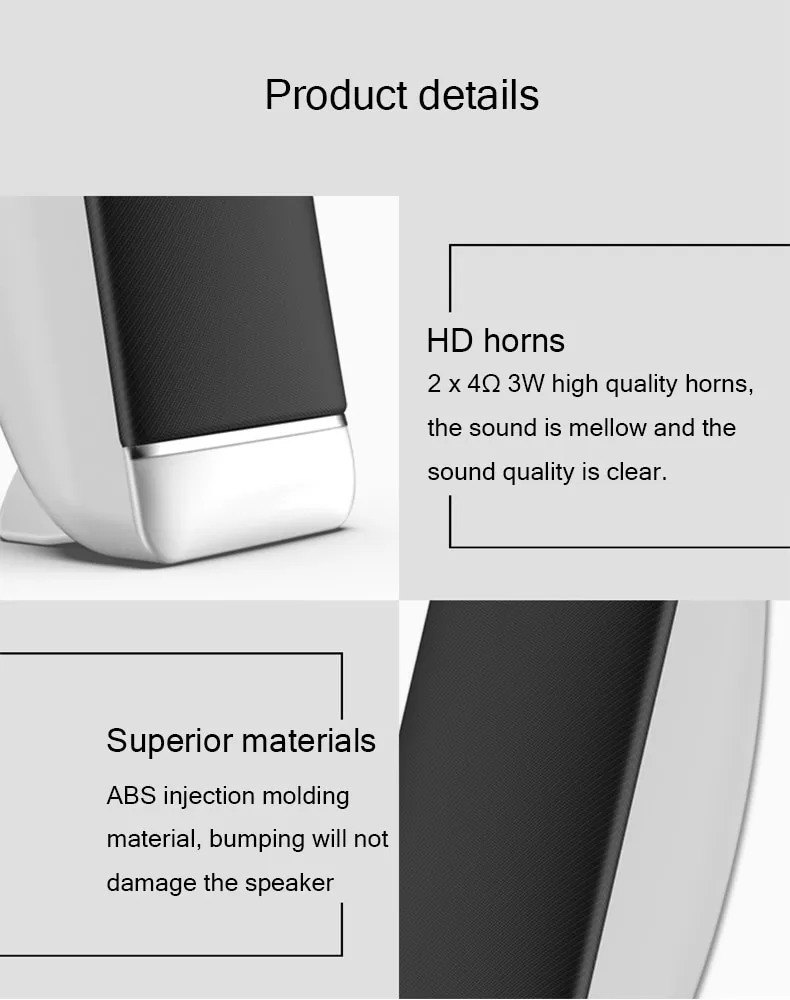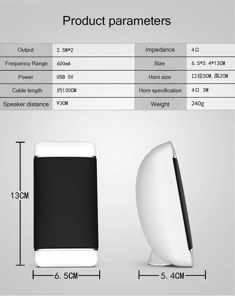 - Asequible y Duradero: Ofrece una calidad de sonido superior sin gastar una fortuna. Potencia de salida: 2,5 W x 2 Corriente de carga: 600 mA Tamaño del producto: 6,5 x 5,4 x 13 cm Alimentación: USB 5 V Tamaño del altavoz: 5 cm de diámetro, 2 cm de altura Longitud del cable: aprox. 1,30 cm Especificaciones del altavoz: 4 Q, 3 W Longitud del cable entre altavoces: 93 cm src="https://gifttree.co.nz/media/commerce_products/85554/1631709726905602048.jpg" ancho máximo="790" />