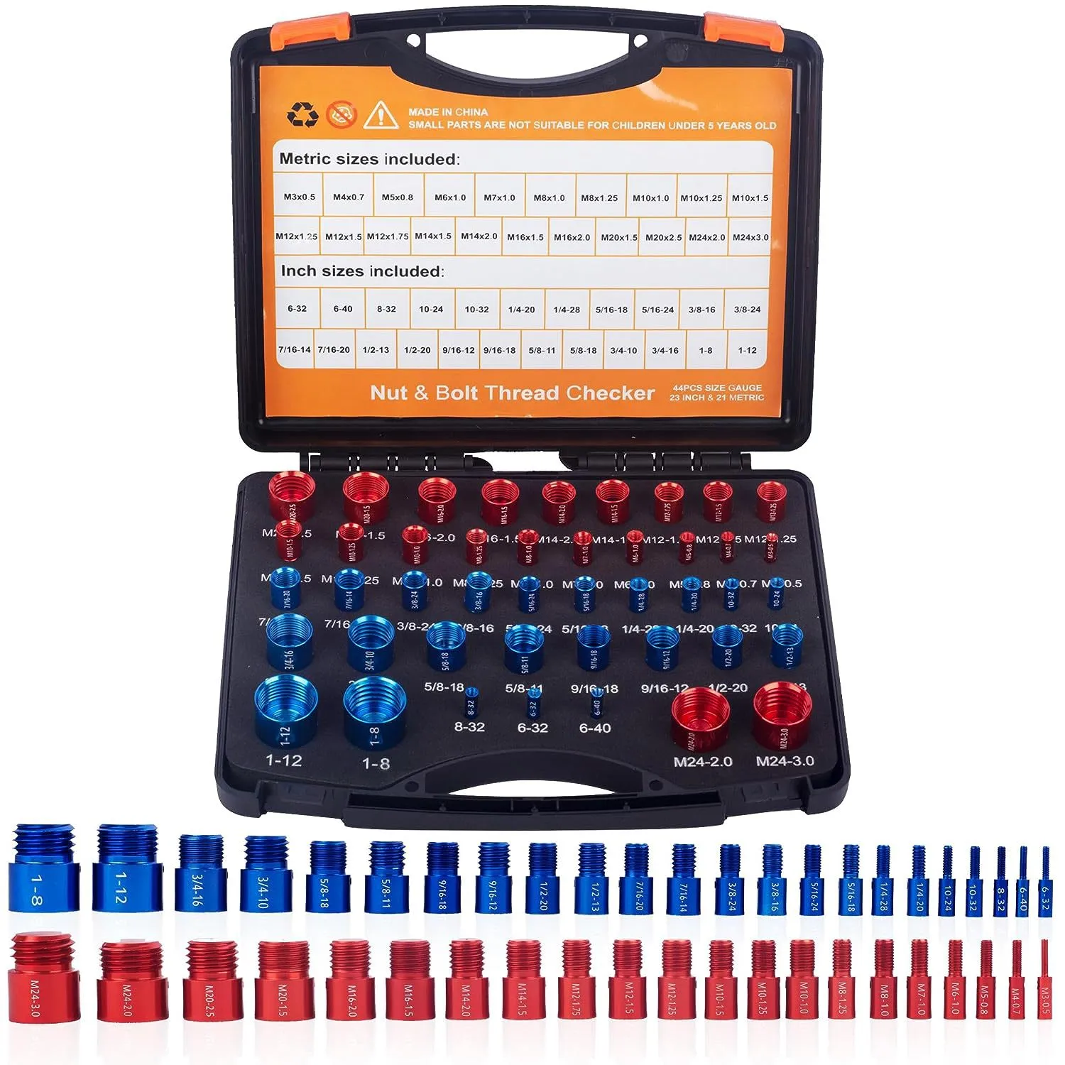 Specifications: 44 pieces of screw gauge aluminum Blue Red, 44 pieces of screw gauge aluminum silver Black, 26 pieces of steel silver Black,