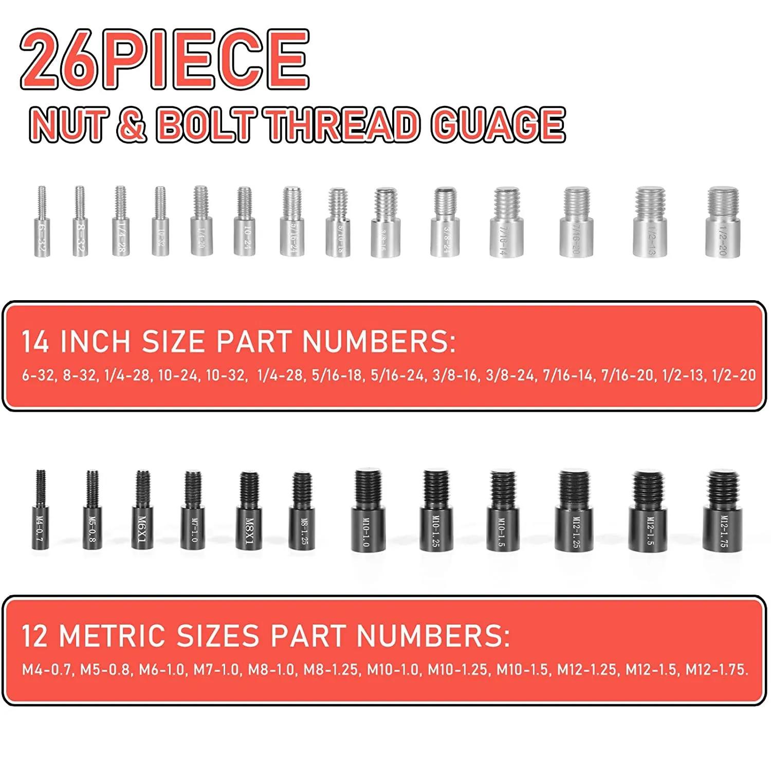 26-piece male gauge screw gauge, nut and bolt Thread Checker