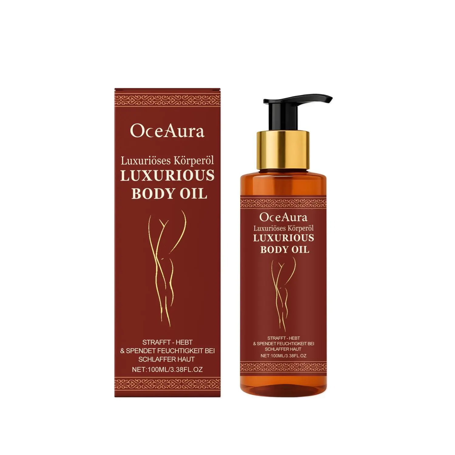 luxurious body oil, firming body oil, moisturizing skin oil, argan oil body oil, anti-aging body oil, hydrating skin oil, jojoba oil body care, vitamin E skin care, rosehip oil, skin firming oil OceAura Luxurious Body Oil deeply hydrates, firms, and nourishes skin with a blend of argan, jojoba, and rosehip oils for a smooth, radiant glow.
