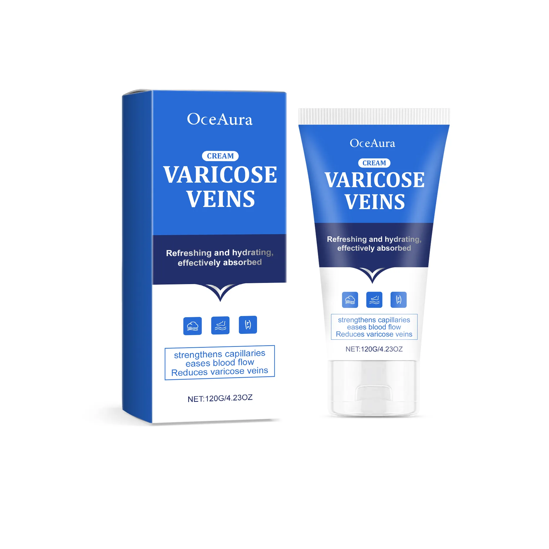 Reduce varicose veins and improve circulation with OceAura Varicose Veins Cream. Strengthens capillaries, eases swelling, and hydrates skin for healthier, more comfortable legs.