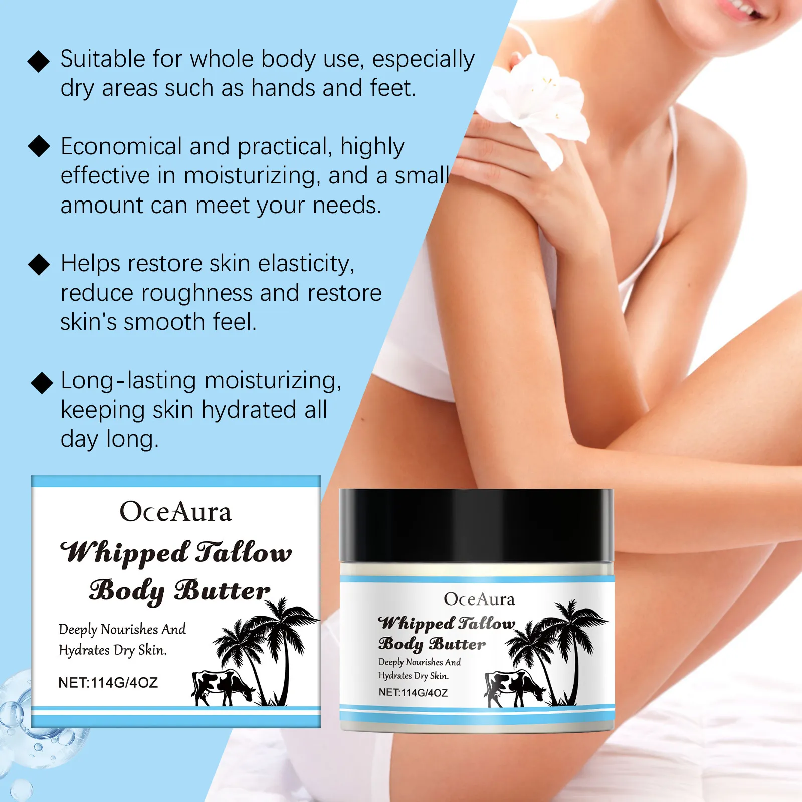 For individuals who want a deeply nourishing skincare product that supports dry skin care routines, OceAura - Whipped Tallow Body Butter offers a natural-inspired and effective body care solution.