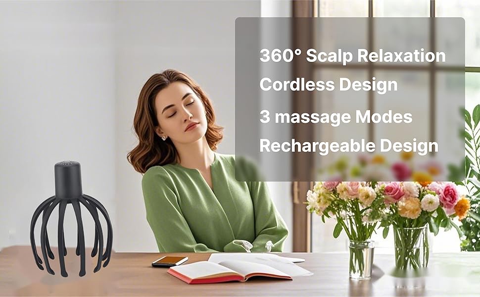 【USB Rechargeable】This octopus massager conforms to the engineering design of the human head curve, fits the head scalp, is