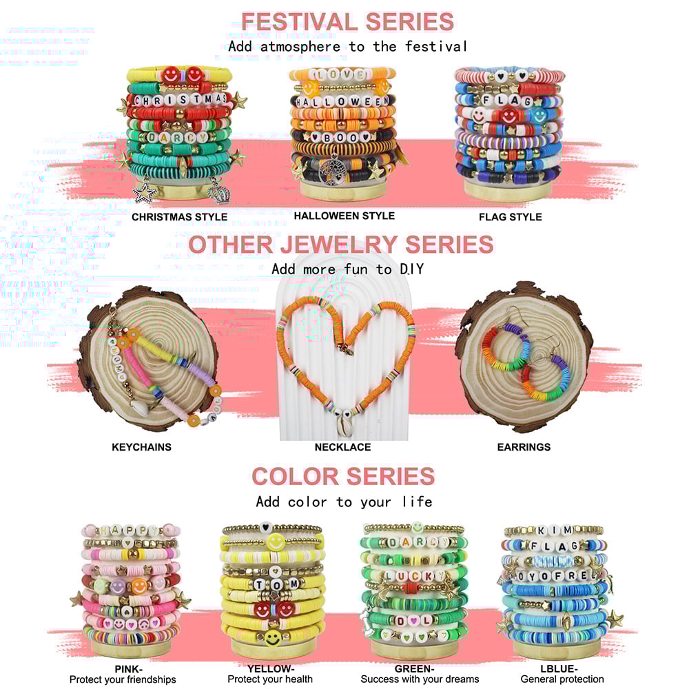 COLORES VIBRANTES: Las cuentas de arcilla polimérica en 24 colores brillantes satisfacen tus necesidades de coloridos objetos de bricolaje. Puedes crear pulseras con cuentas heishi de arcilla polimérica mixtas y tus colgantes favoritos. Preparamos todo lo necesario. Puedes crear fácilmente pulseras atractivas. La imaginación es más importante que las habilidades aquí.