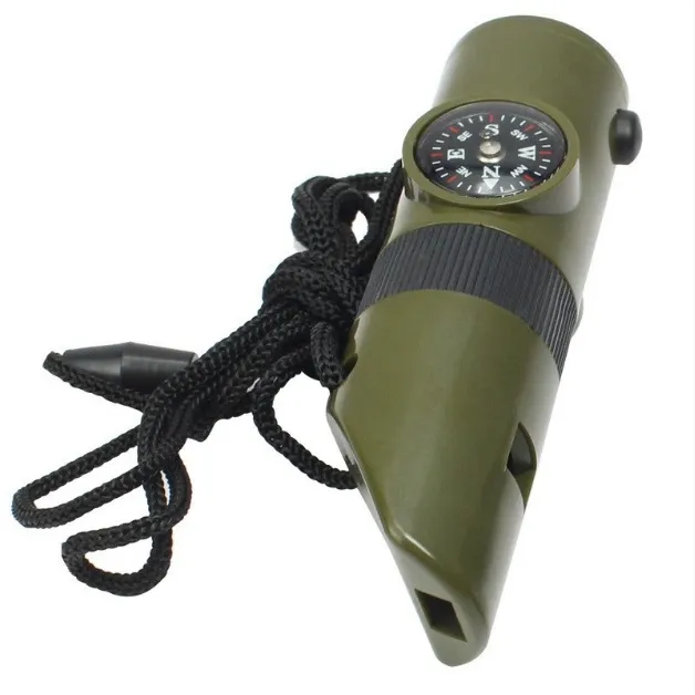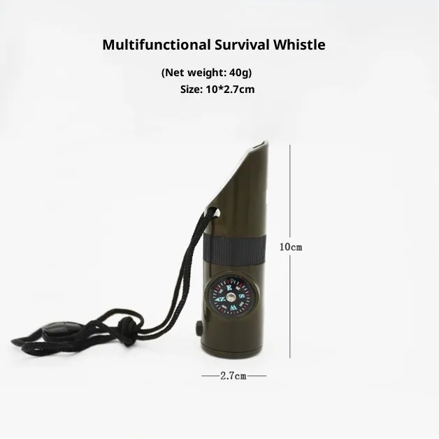 Off-the-Shelf Seven-in-One Whistle Multi-Function Compass Survival Whistle Outdoor Products is designed to provide multiple survival functions in a single portable tool. Built for outdoor environments, it helps improve safety, awareness, and preparedness during adventures or emergencies.