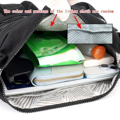 Nylon material and lining make the bag ideal for everyday wear, light rain, and easy wipe-down care.