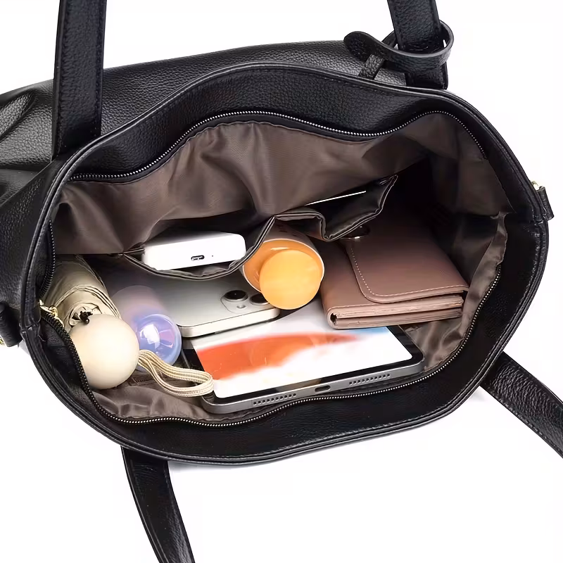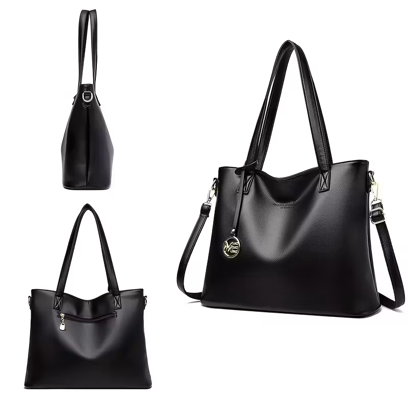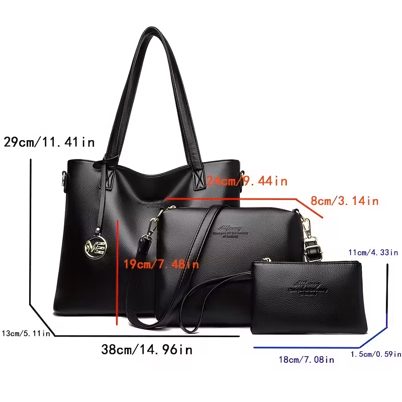 Three-Piece Set: This set includes a main handbag, a smaller shoulder bag, and a pouch, offering versatility and multiple carrying options.