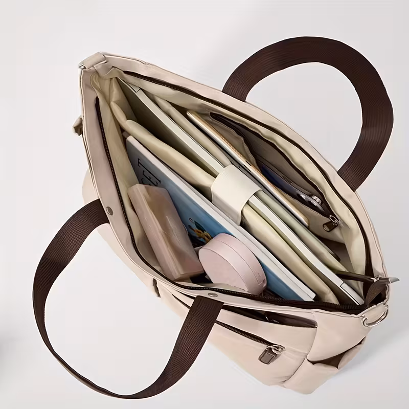 The 欧格华菲 OGEHUAFEE Lightweight Nylon Laptop Bag for Men & Women combines sleek design with practical features, making it the perfect bag for work, travel, or everyday use. With multiple compartments, an adjustable shoulder strap, and trolley sleeve, this bag offers convenience, comfort, and style. Available in beige, brown, gray, and black, this bag complements any outfit while providing ample space for your essentials. Make the 欧格华菲 OGEHUAFEE Lightweight Nylon Laptop Bag your go-to accessory for daily use.