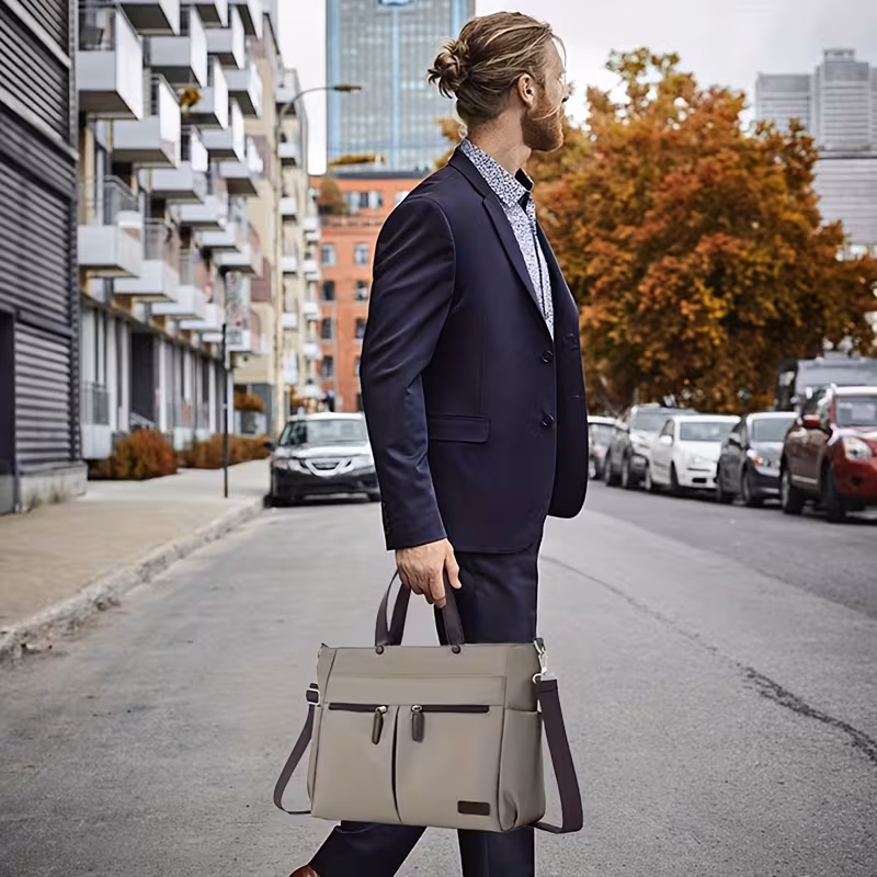 The 欧格华菲 OGEHUAFEE Lightweight Nylon Laptop Bag is the ultimate combination of style, functionality, and practicality. Designed for both men and women, this sleek bag features an adjustable shoulder strap, multiple pockets for organized storage, and a zipper closure to keep your belongings secure. Whether you're commuting to work, traveling, or just need a reliable bag for daily use, this business commuter briefcase is ideal for carrying your laptop and essentials. The detachable strap offers flexibility, making it easy to switch between shoulder and hand carrying. A perfect Christmas gift for anyone who values convenience and organization.
