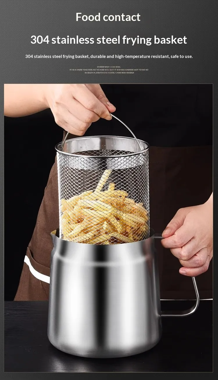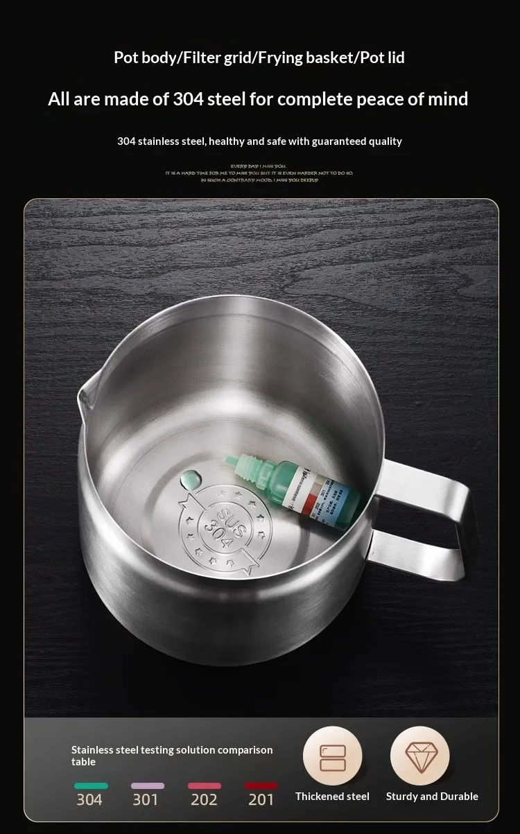 [With filter and fry basket] 304 stainless steel oil filter—2.0 liters; [With filter, fry basket, and tongs] 304 stainless steel oil