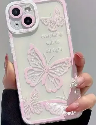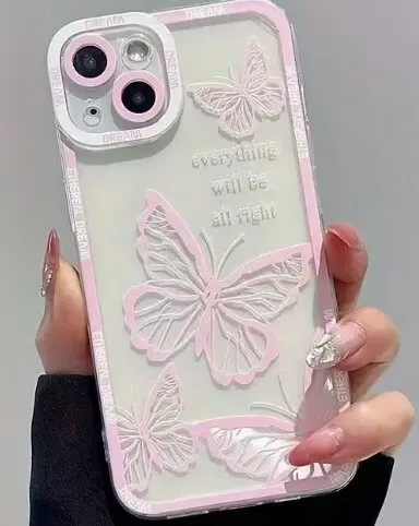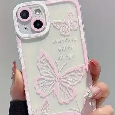 Color: [Angel eye transparent soft shell] sand powder oil painting flowers, [Angel eye transparent soft shell] light pink letter butterfly