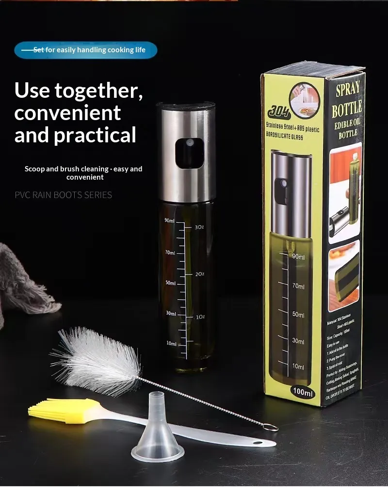 The oil spray bottle is a practical kitchen tool designed to distribute oil evenly through a fine mist spray. Made from durable materials such as glass or food-safe plastic, it provides a reusable and convenient alternative to traditional oil pouring.
