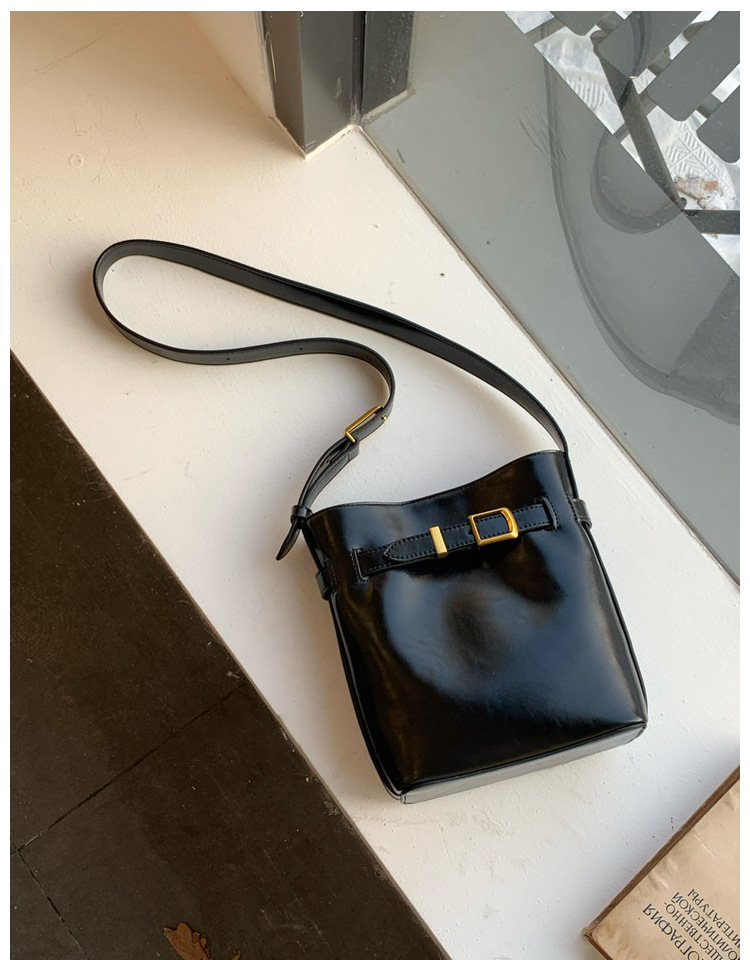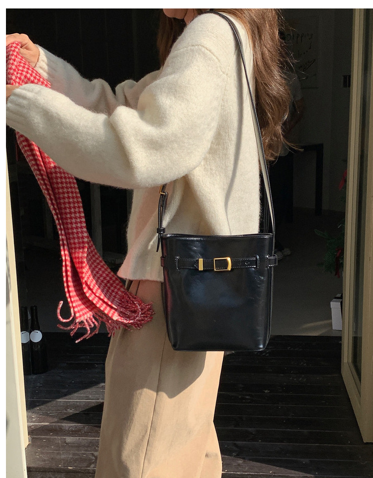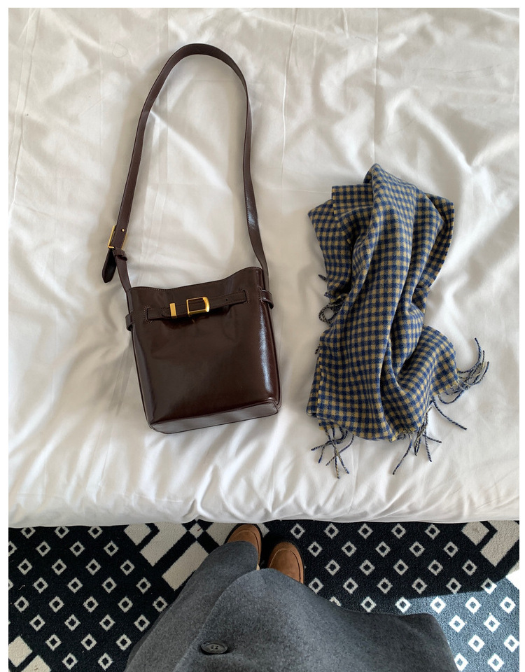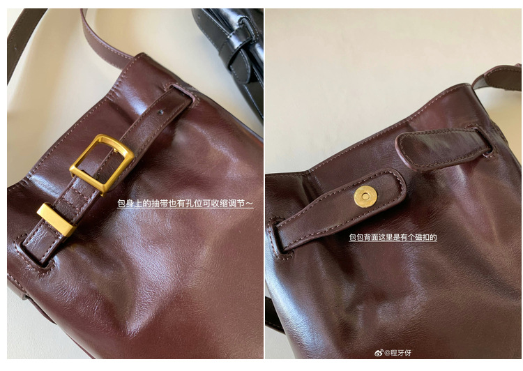 Oil Wax Leather Shoulder Messenger Bag Retro Simple Bucket Bag