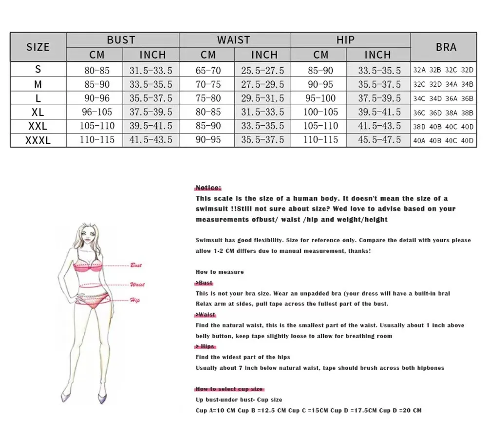 allow 2-3cm differences due to manual measurement.