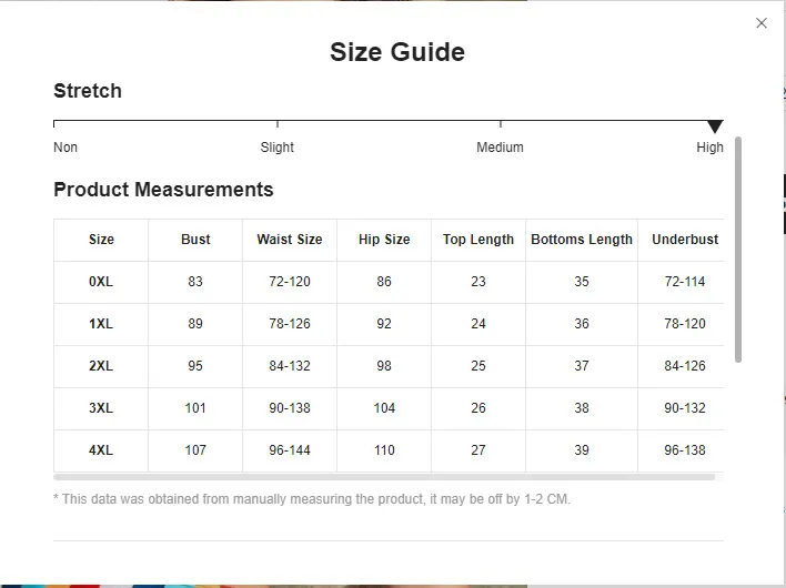 allow 2-3cm differences due to manual measurement.
