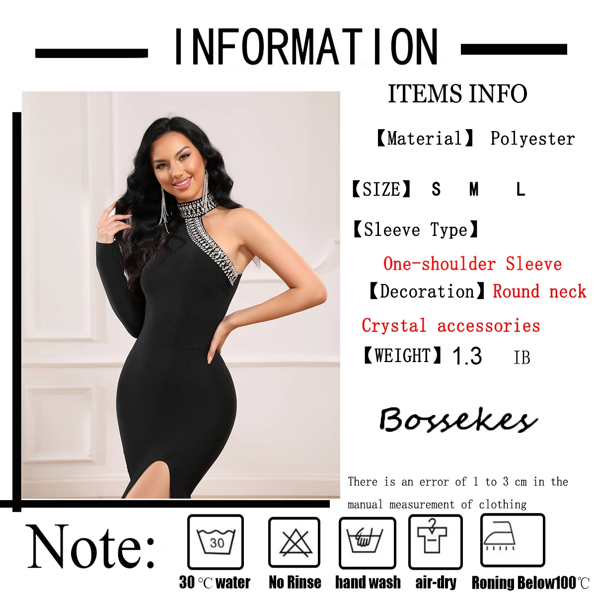 One Shoulder Bandage Dresses Women Round neck One Sleeve Evening Dresses Handmade Rhinestone Celebrity Party Dresses Vestidos