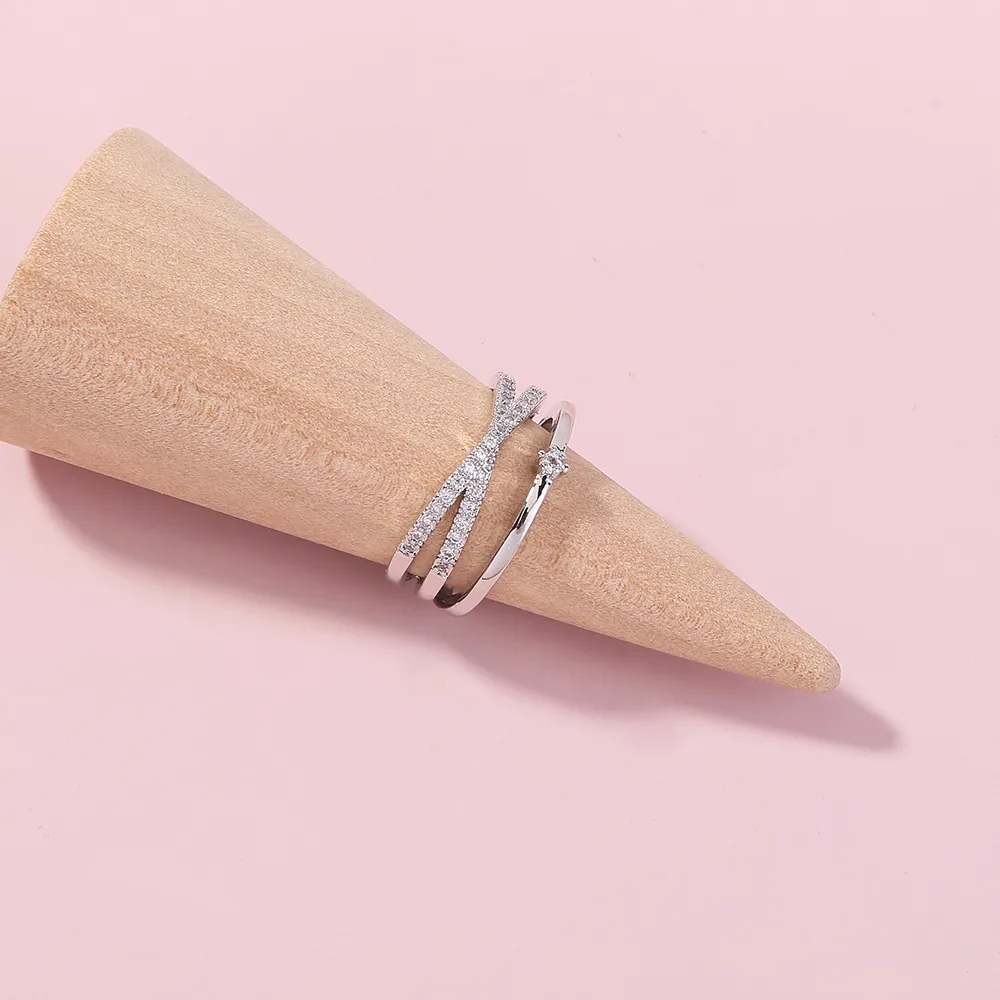 Opening Adjustable Copper Inlaid Zircon Cross Ring Jewelry Product Description