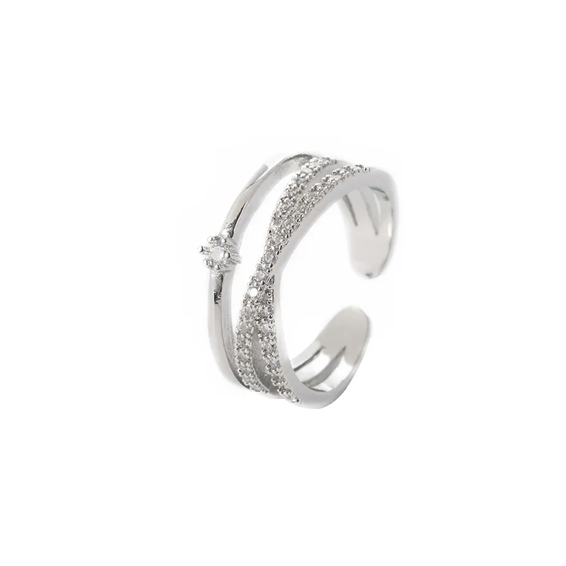 Opening adjustable copper inlaid zircon cross ring jewelry