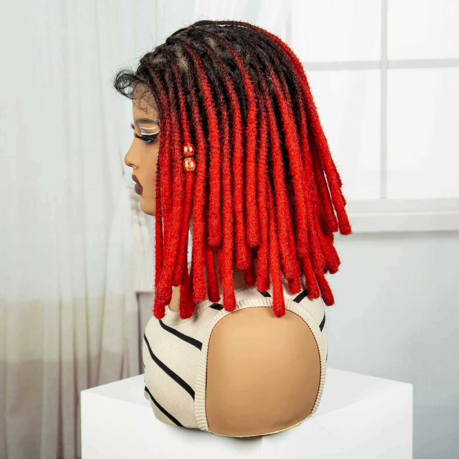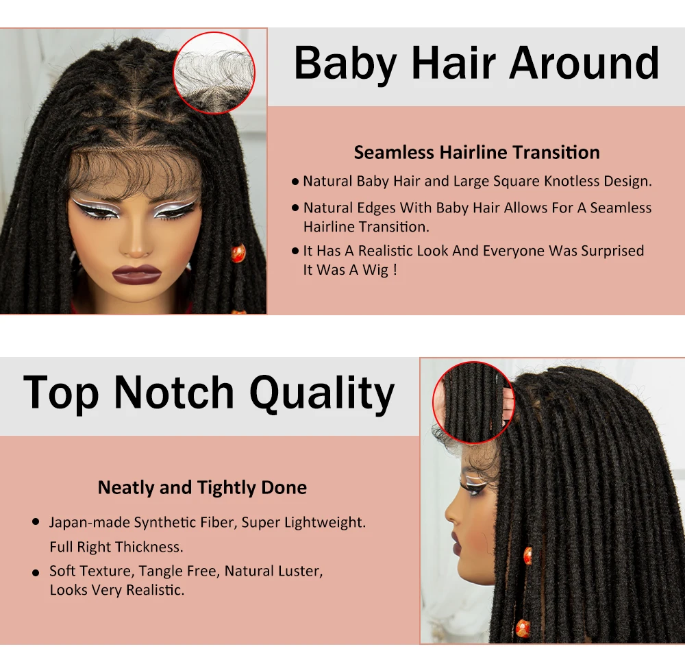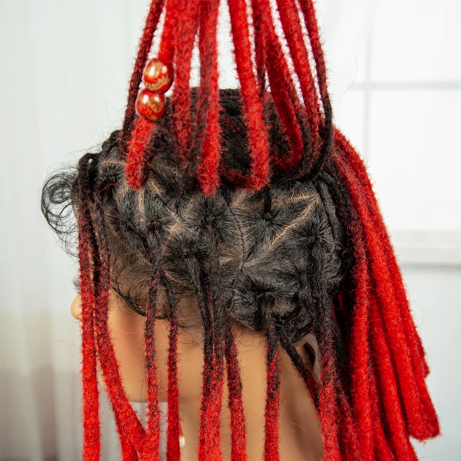 Orange Color Faux Locs Braided Wigs Synthetic Full Lace Knotless Braided Lace Wig for Women Dreadlock Braids Wig with Baby Hair