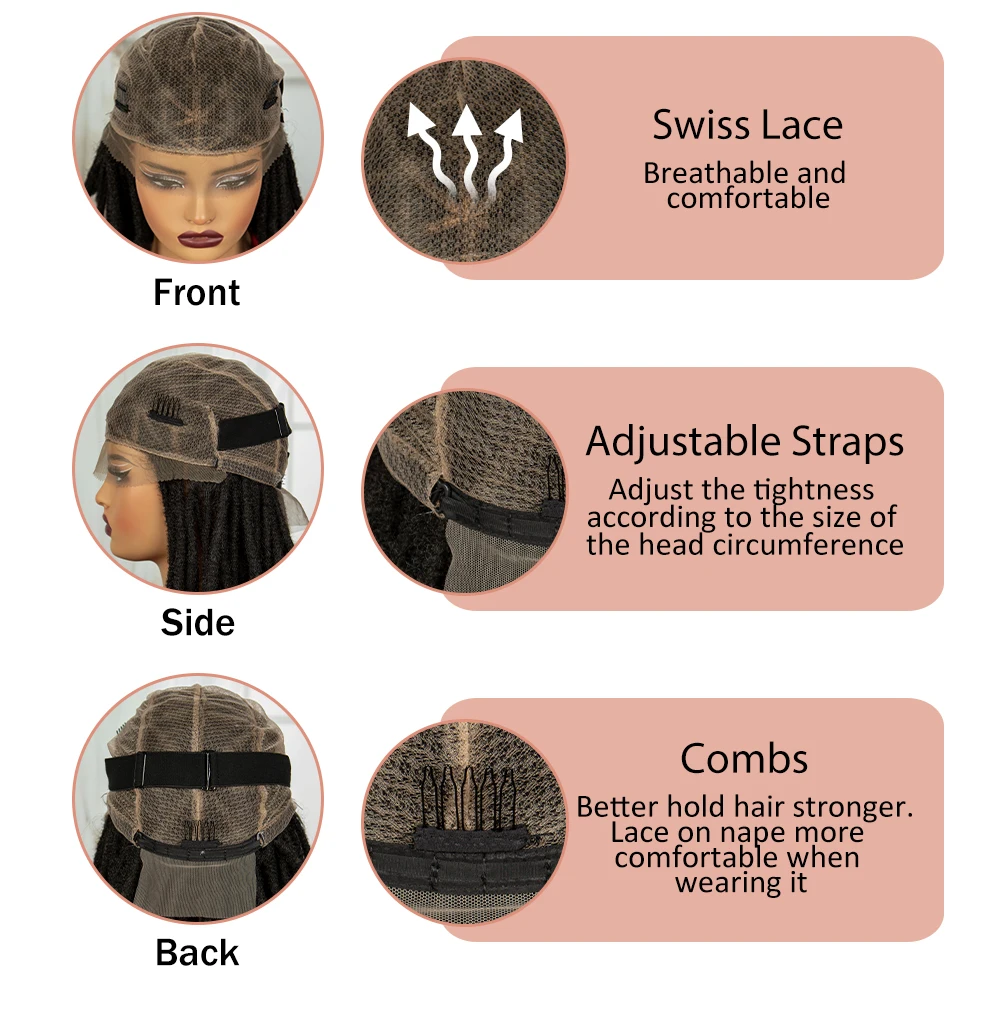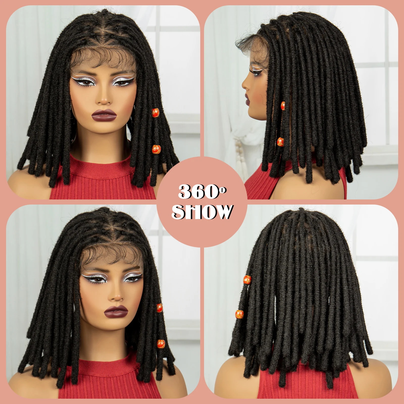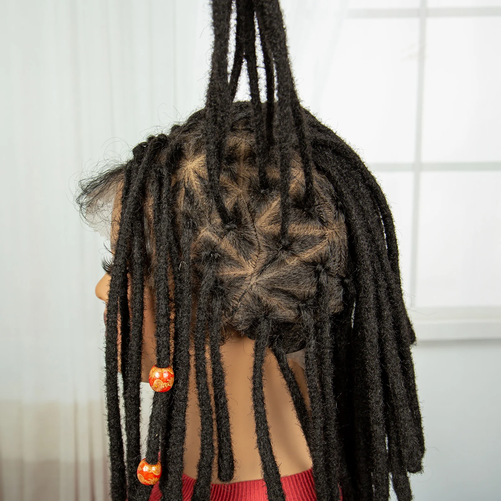 Orange Color Faux Locs Braided Wigs Synthetic Full Lace Knotless Braided Lace Wig for Women Dreadlock Braids Wig with Baby Hair