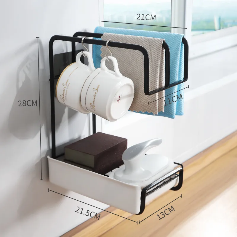 Organizador de cocina de pared con soporte para esponja y escurridor de platos