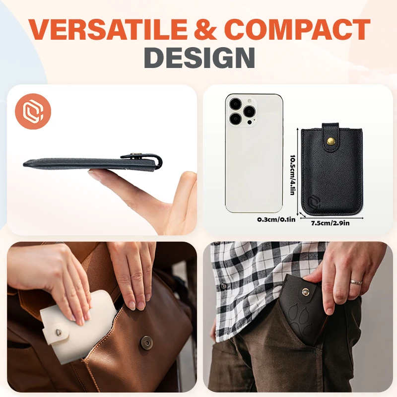 Acceso sin esfuerzo: Simplemente jala la pestaña para acceder a tus tarjetas más usadas. Olvídate de rebuscar en una billetera abarrotada. Seguridad mejorada: Protege tus tarjetas y efectivo con el botón a presión. Ten la seguridad de que tus artículos estarán seguros y no se caerán fácilmente. Amplio espacio de almacenamiento: Tiene capacidad para hasta 10 tarjetas e incluye un práctico bolsillo para monedas o efectivo, lo que garantiza que todos tus artículos esenciales estén perfectamente organizados.