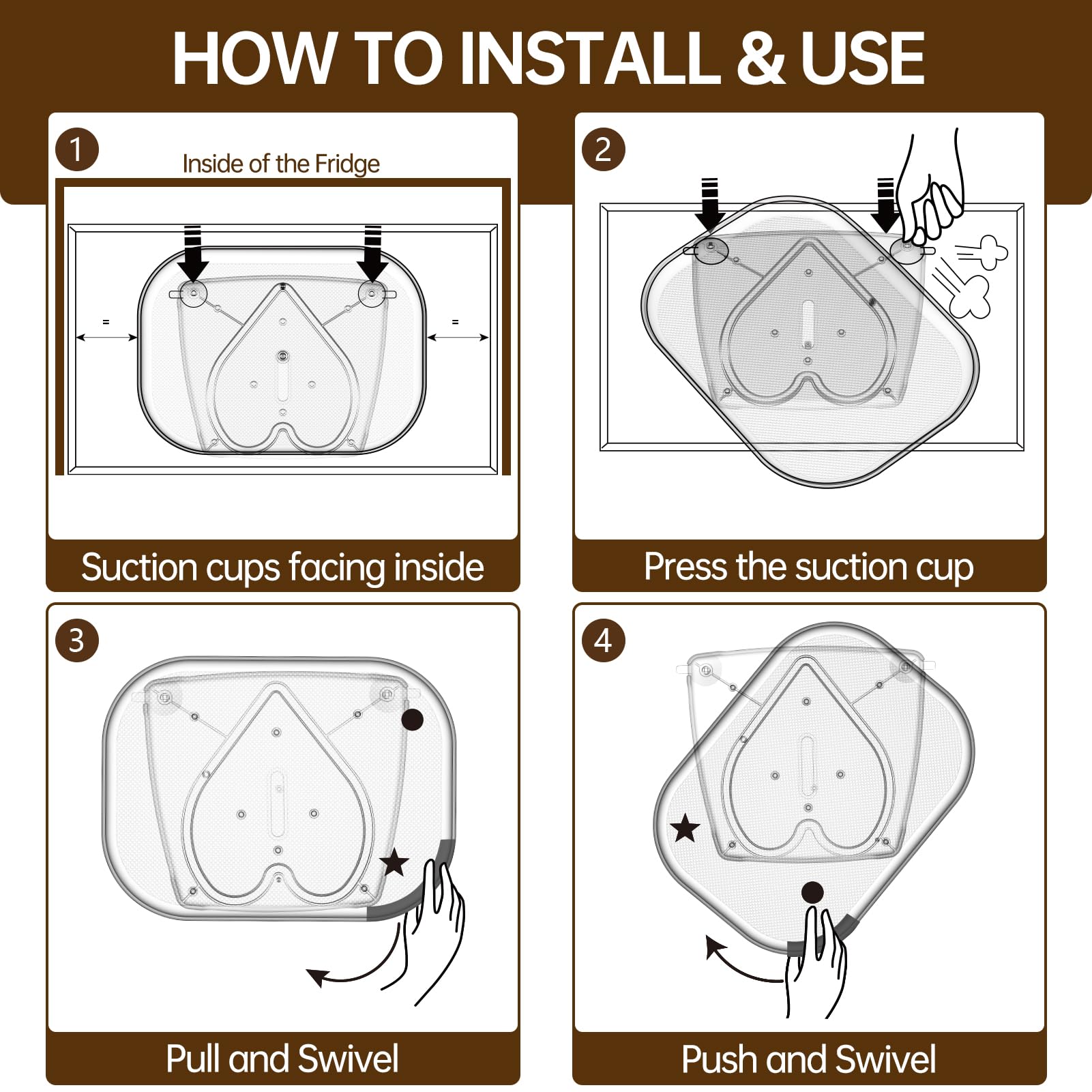 Este último organizador giratorio para refrigerador es muy fácil de instalar en segundos sin herramientas, se fija rápida y fácilmente a la superficie usando ventosas y las instrucciones incluidas. Resistente y duradero: fabricado con acrílico transparente de primera calidad y materiales PET duraderos, este soporte giratorio para encimera está diseñado para durar sin deformarse, lo que facilita ver y agarrar rápidamente los artículos en el interior.