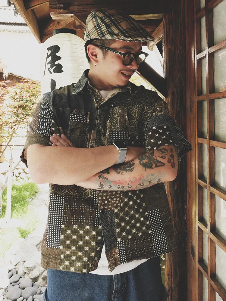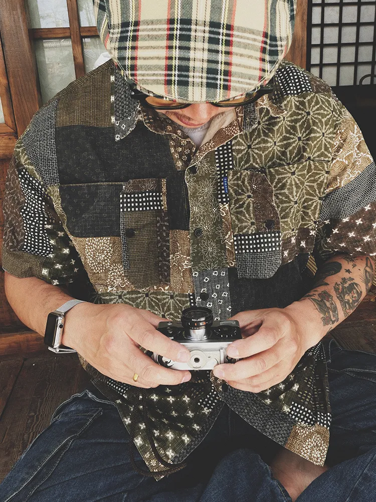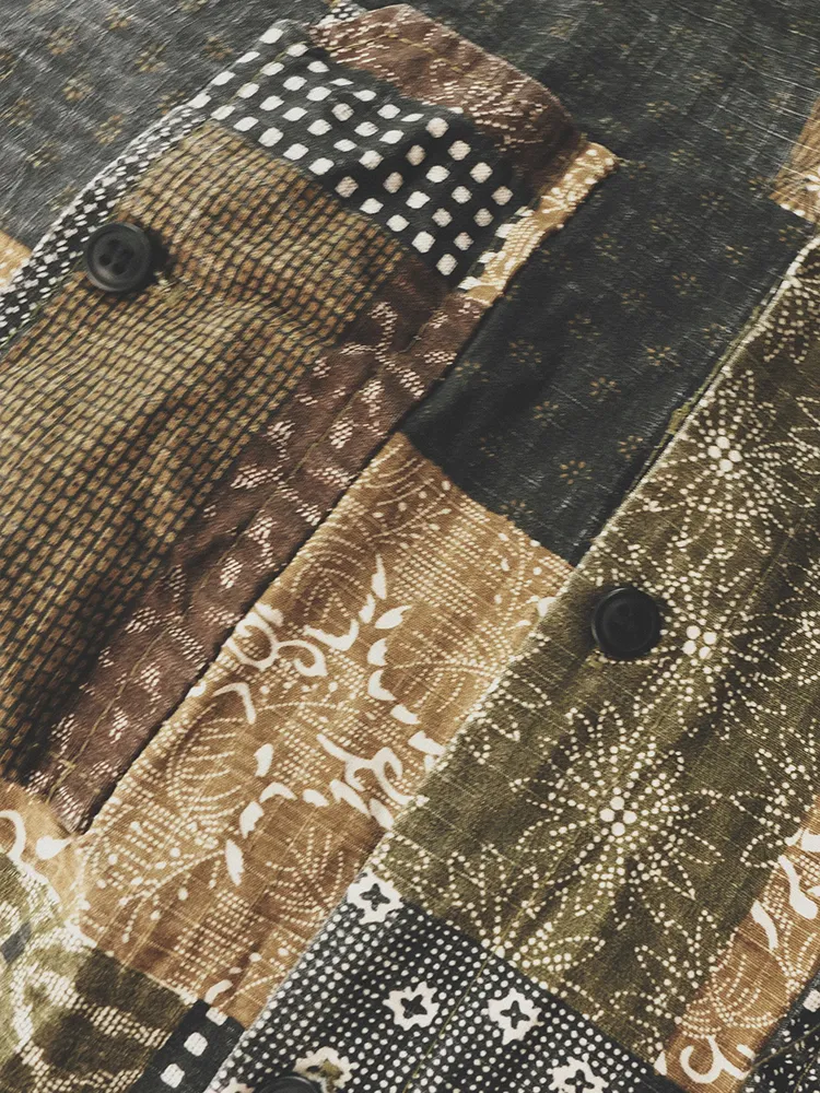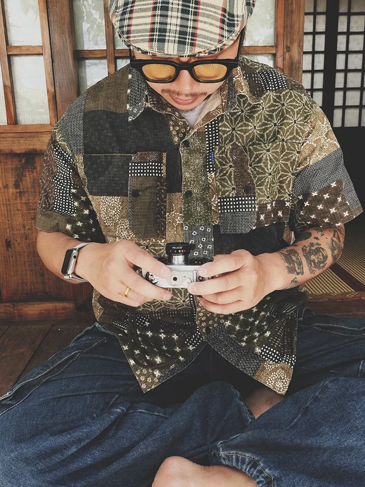 Original Green Coffee Color Matching Cashew Flower Shirt Ami Kaji Shirt Summer Shirt Men'S Short-Sleeved Japanese Shirts For Men And Women
