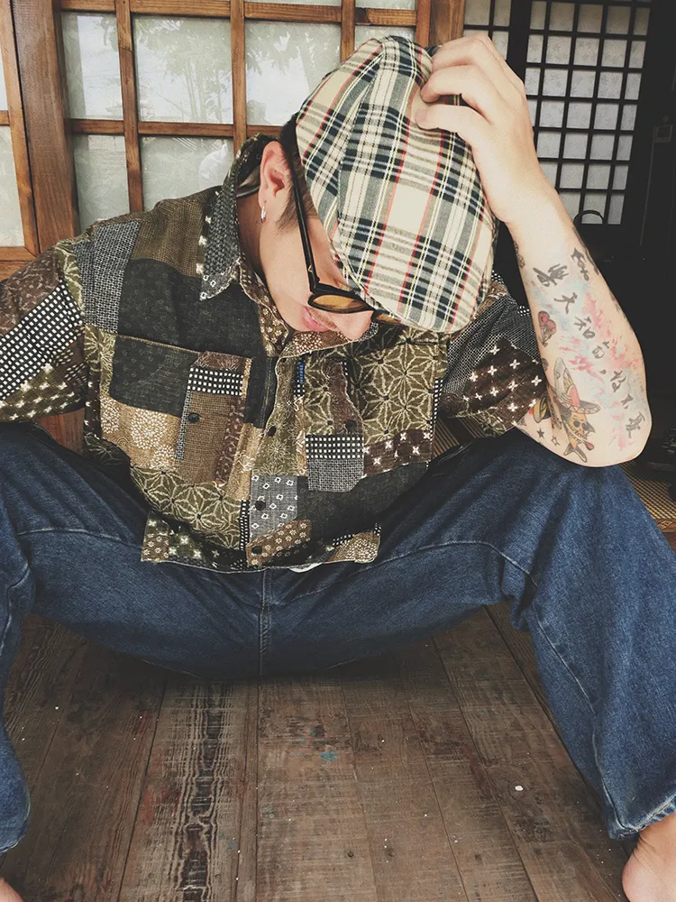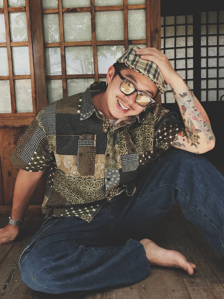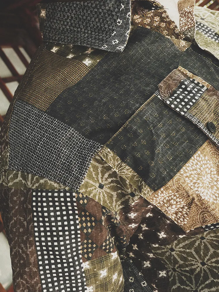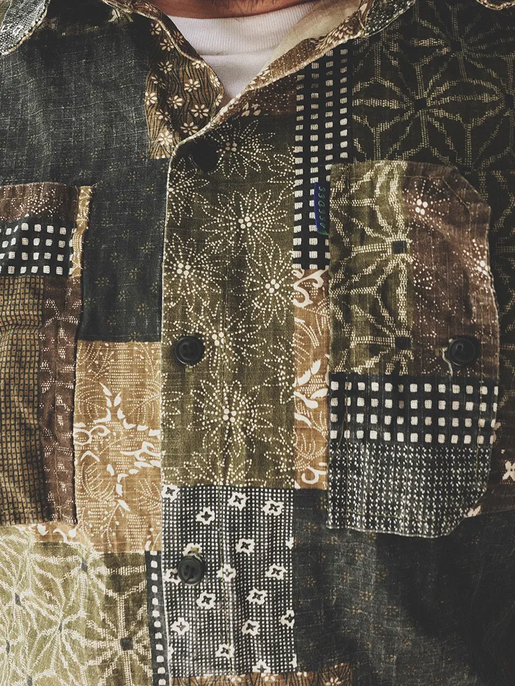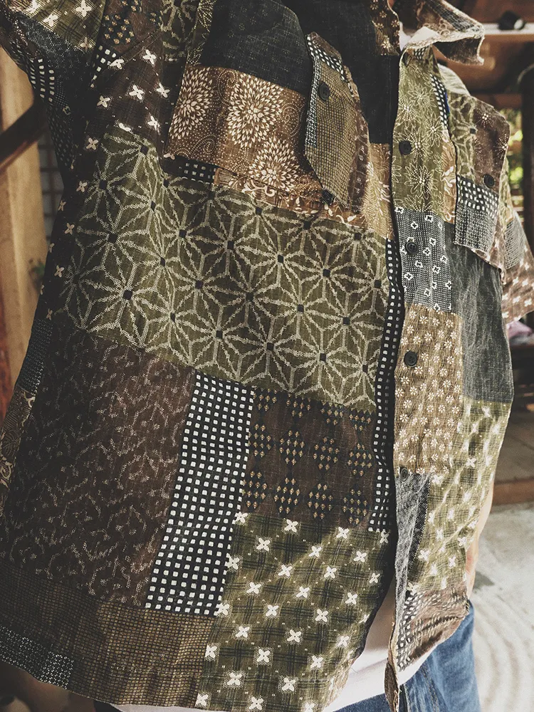 Original Green Coffee Color Matching Cashew Flower Shirt Ami Kaji Shirt Summer Shirt Men'S Short-Sleeved Japanese Shirts For Men And Women
