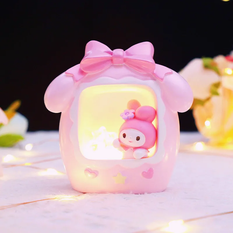- Color and Material: Made from high-quality plastic with a soft, warm light, these night lights create a soothing ambiance. The exterior is often decorated with charming illustrations or patterns that align with the Kuromi and Melody theme.