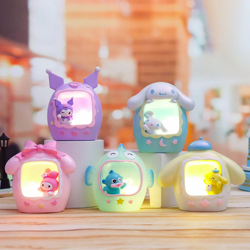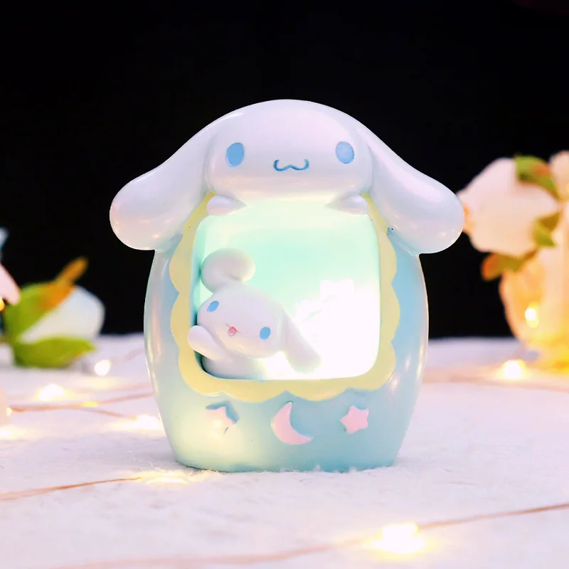 - Design: Each night light is crafted in the shape of a moon, adorned with anime-inspired elements featuring characters like Kuromi and Melody. The design combines soft, pastel colors with cute and playful details that enhance its visual appeal.
