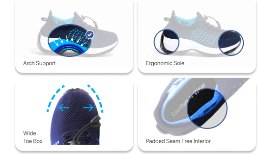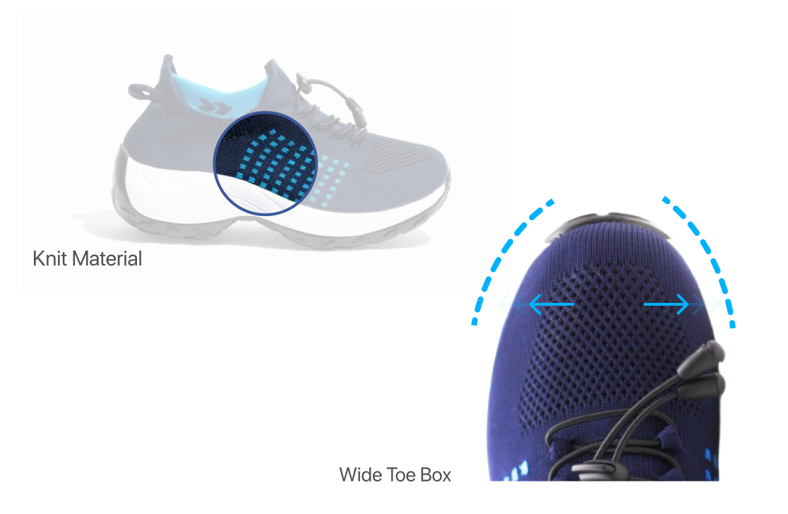 - Non-Binding Uppers: Our shoes feature flexible uppers that adapt to the shape of the foot, preventing constriction and promoting circulation.