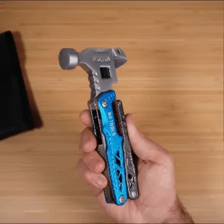 This tool combines the functions of a hammer, wrench, and pliers into one compact frame — reducing the need to carry multiple tools when exploring the outdoors or working on projects.