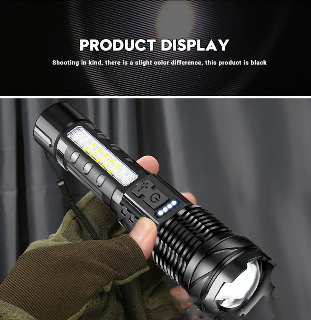 The Outdoor Lighting White Laser Flashlight with COB Warning Side Work Light is designed for users who need a powerful, flexible, and dependable lighting solution in all conditions. Ideal for New Zealand outdoor lifestyles, this multi-function flashlight combines long-range illumination, wide-area work lighting, and emergency visibility in one compact tool. Whether you are exploring outdoors, working in low-light environments, or handling unexpected situations, it delivers performance, safety, and convenience.