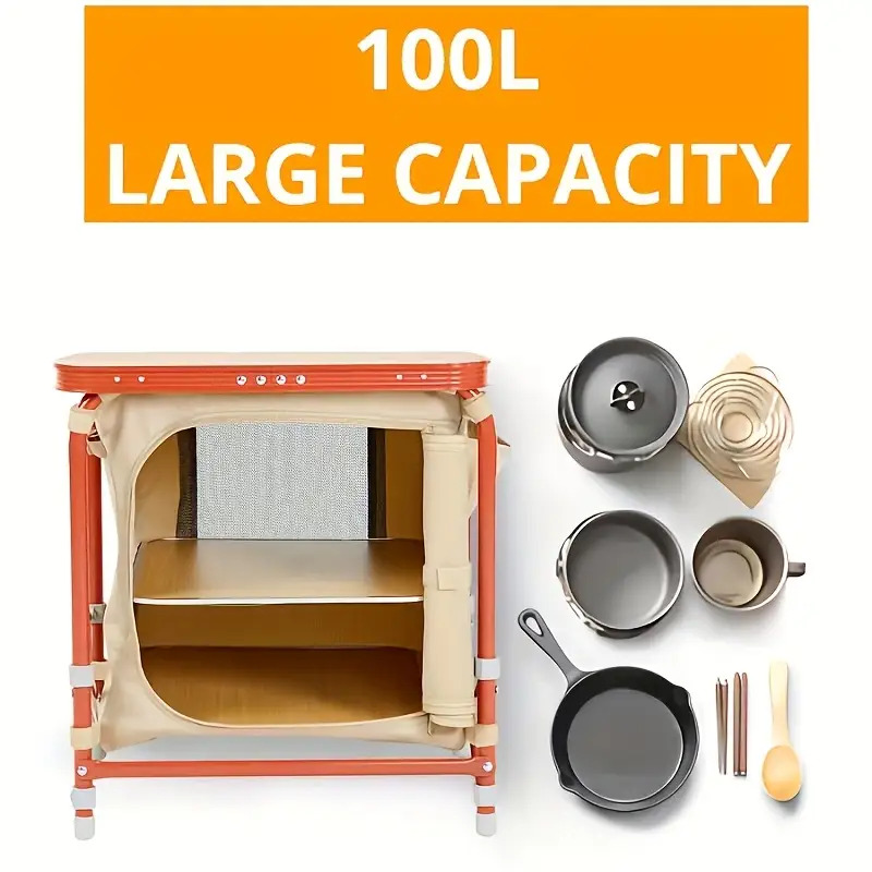Outdoor Portable Camping Cabinet – Large Capacity Storage Table for Camping & Travel