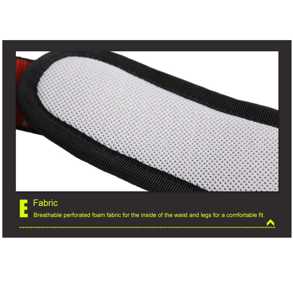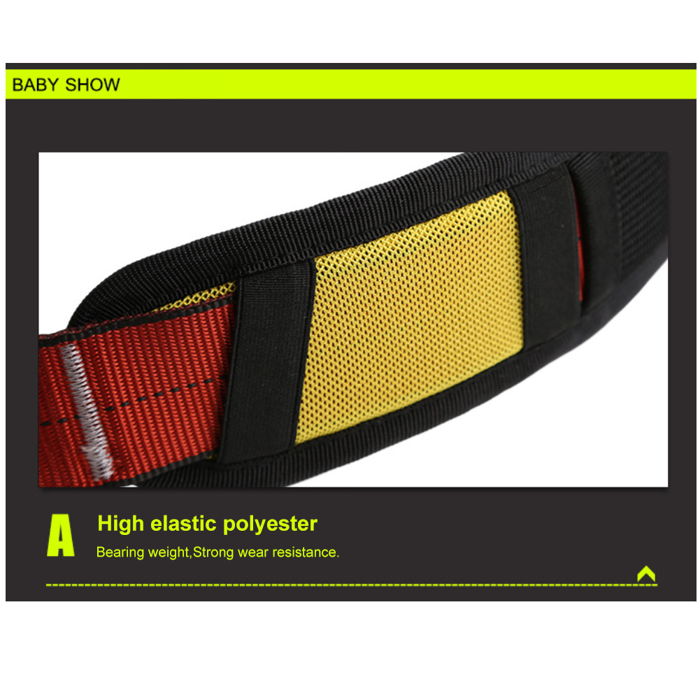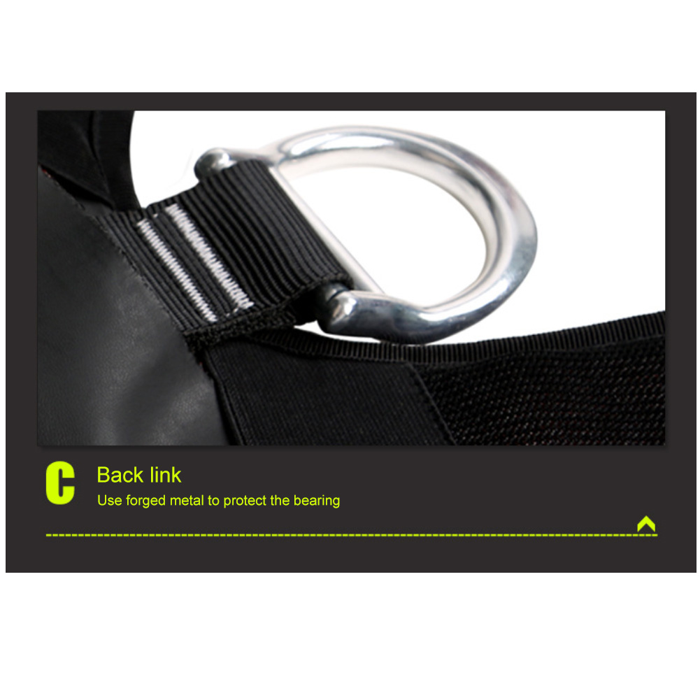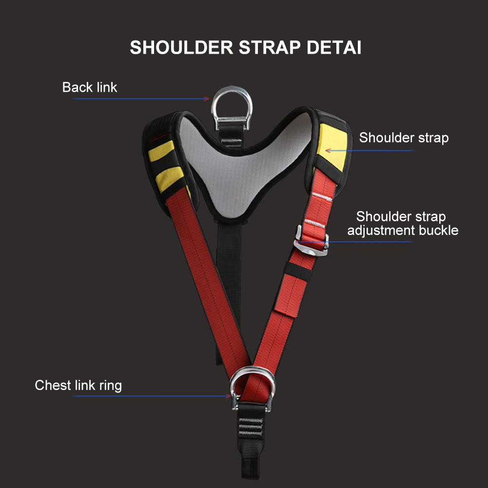 The full-body harness is designed for comfort and security, with adjustable straps to ensure a snug fit for various body sizes. Padded support minimizes strain during prolonged use.
