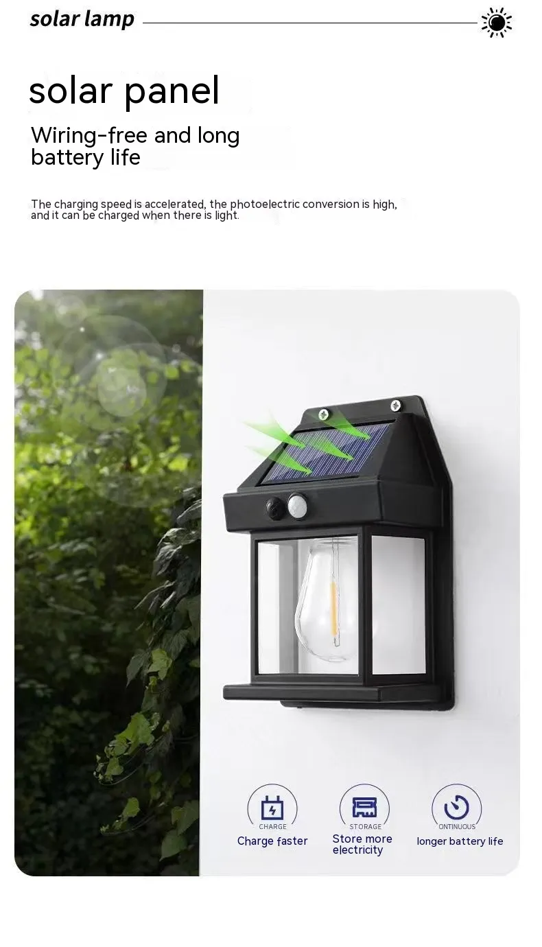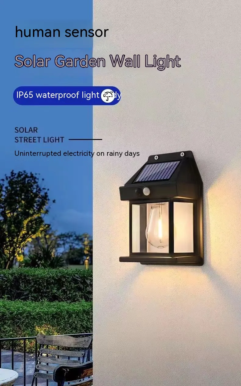 Power supply: solar tungsten wire wall lamp (Shell black), solar tungsten wire wall lamp (shell White)